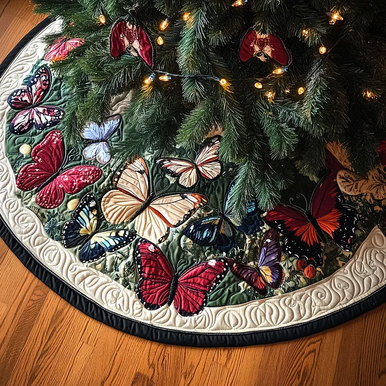 Butterflies in Bloom Quilted Christmas Tree Skirt NCU0PT1921