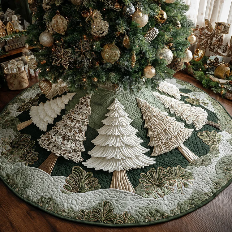 Golden Trees Quilted Christmas Tree Skirt NCU0DV7593