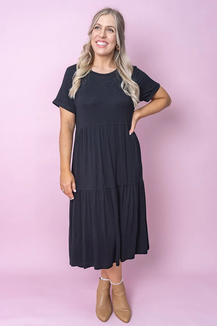 Turn heads with the Pauline Midi Dress in Black! This midi-length stunner is made of soft and flowy modal, so it's sure to keep you comfy and chic all day.