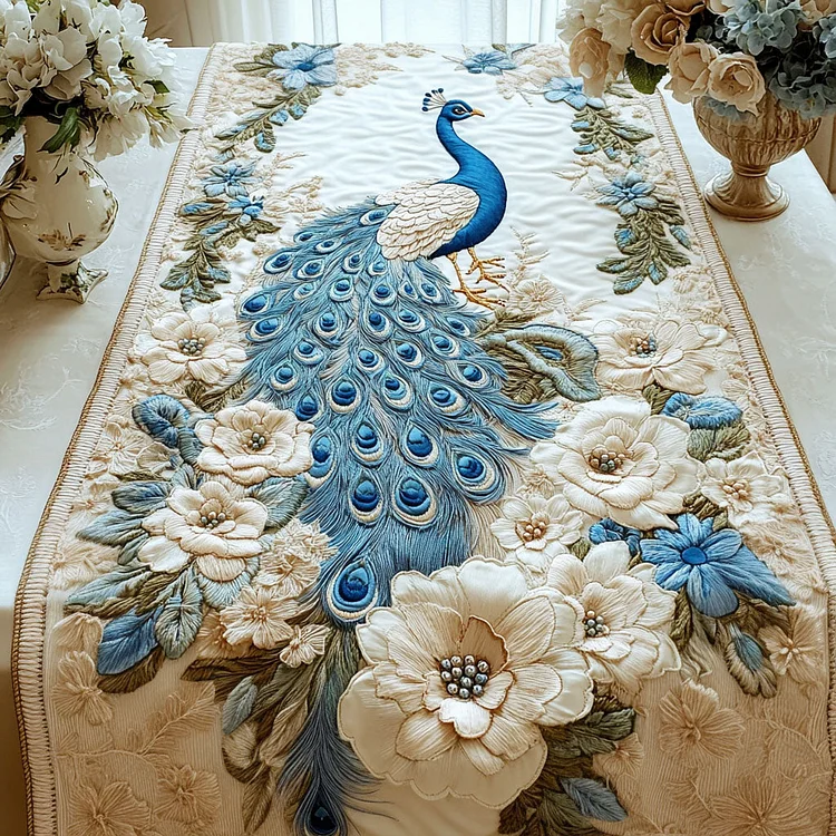 Peacock Bloom Quilted Table Runner NCU0NT3622