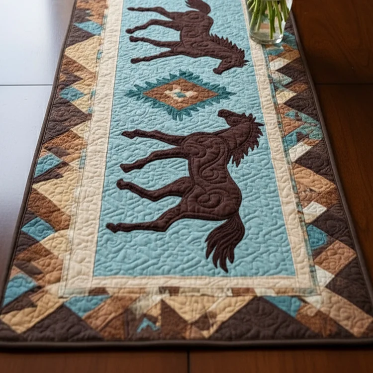 Teal Horses Quilted Table Runner NCU0NT10847
