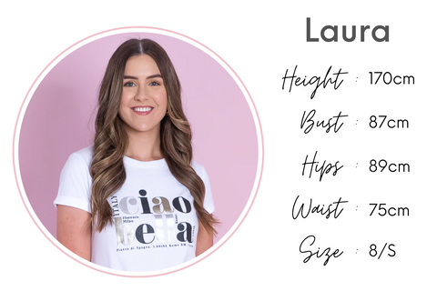 - Laura wears size 8
