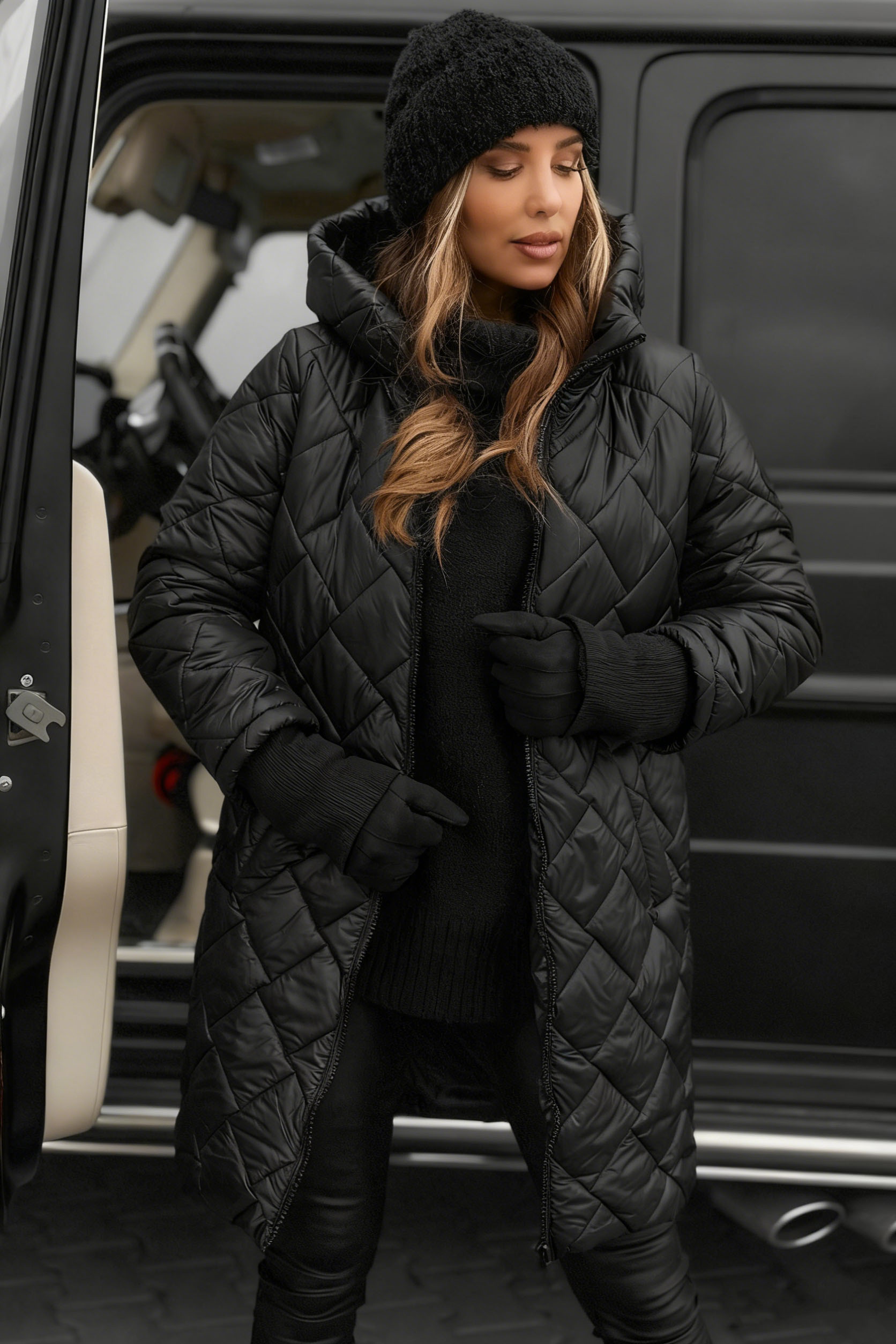 Women's Hooded Zip-Up Long Casual Cotton Jacket-1121